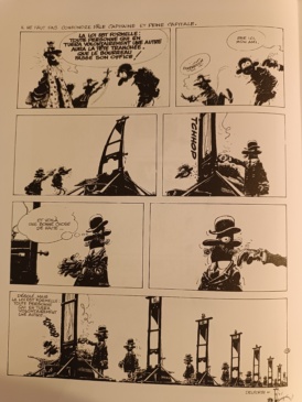 L’œuvre se distingue par un humour très sombre, radicalement différent des séries plus légères de Franquin: focus sur 3 planches dénonçant la peine de mort ( p 12, 23 et 35 du tome un paru en 1981