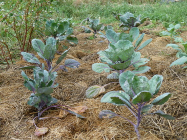 Paillage sur choux rouges