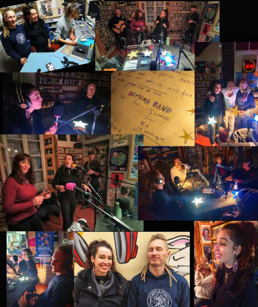 Diiviina band a pris racine dans les caraïbes, dans la rencontre fulgurante d’un duo de musiciens nomades ayant décidé de matérialiser leur union amoureuse et artistique dans la réalisation de chansons originales ou nées d’improvisations.