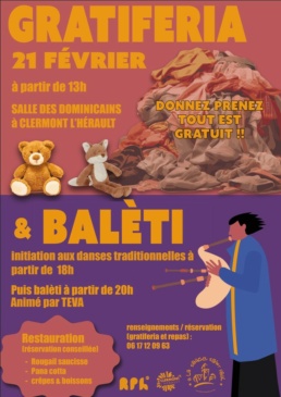 Gratiféria, baléti et rougail saucisse vous attendent le samedi 21 février Salle des Dominicains (ancien Espace des Pénitents) à Clermont‑l’Hérault avec A La Sauce Saint Paul de 13h à plus soif!