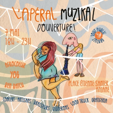 L’Apéral Muzikal d’ouverture se tiendra comme à son habitude à Aniane le jeudi 07 mai de 18h à 23h avec les artistes AFRO COEUR, BEN BATCH ET YOG!